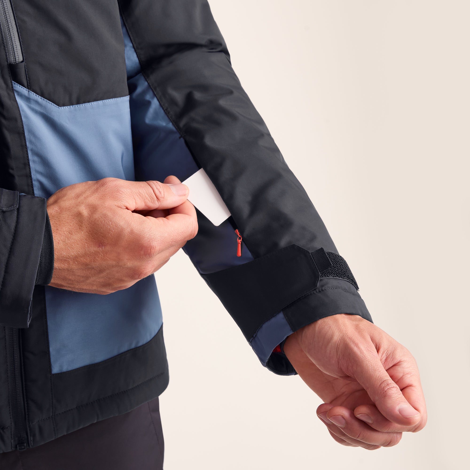 A ski pass pocket solves all that. It’s a clear, touch-sensitive pocket on your sleeve where your lift pass slips in once and stays put. Approach the scanner, wave your arm, and you’re through. No fumbling. No glove juggling. No holding up a line of muttering skiers.